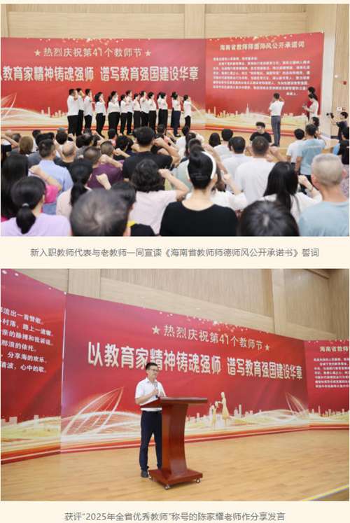 金秋九月,硕果盈枝。9 月 5 日,海南省技师学院在老城校区举办以“教育家精神铸魂强师,谱写教育强国建设华章”为主题的庆祝第 41 个教师节活动。学院领导班子及全体教职员工参加活动。