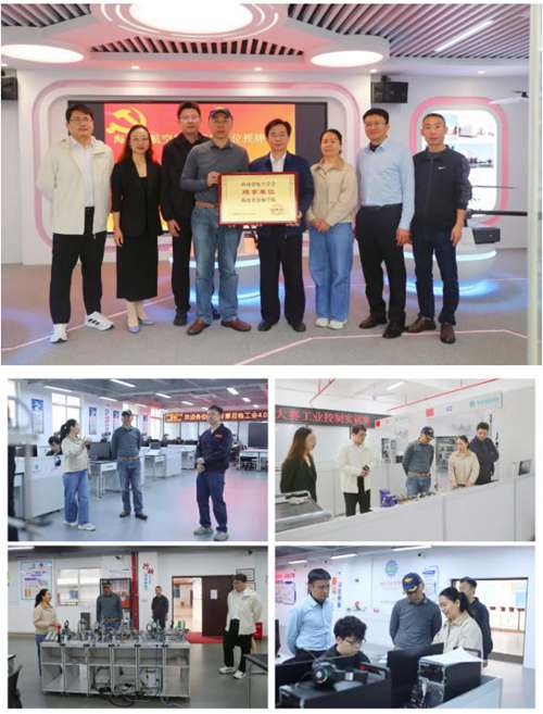 王吉理事长一行实地参观了无人机应用技术、机电一体化、工业控制和工业4.0等实训室。电控制系负责人主要介绍了实训室建设、教学使用情况和相关专业取得的技能竞赛成绩。王吉理事长对学院的专业建设和育人成果给予高度评价。